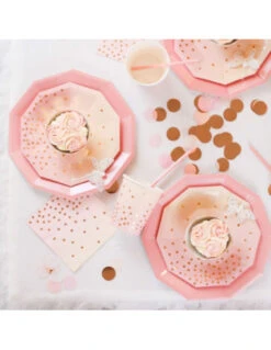 20 Petites Serviettes Dégradées Roses Et Pêche, Pois Rose Gold